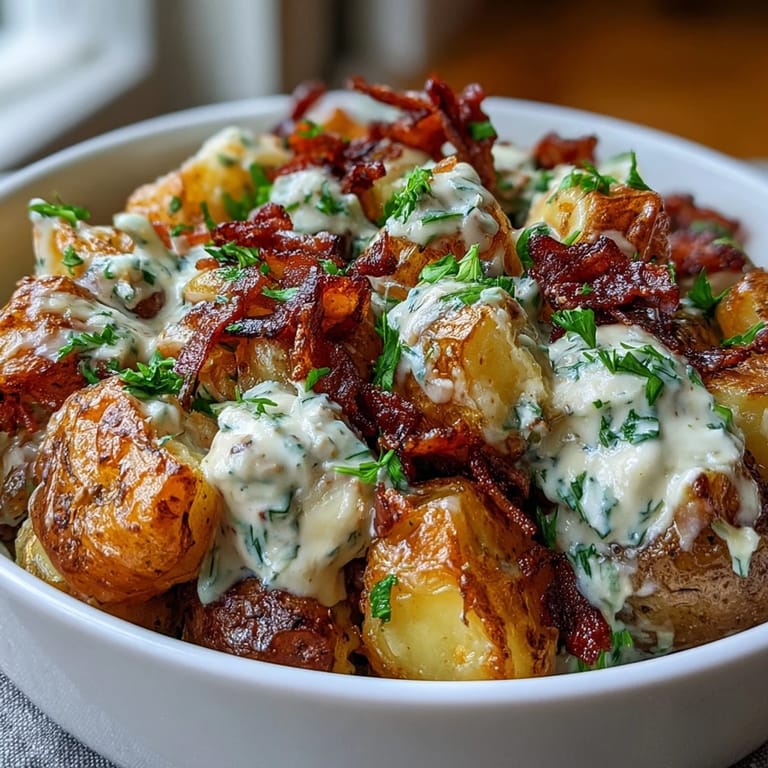 Pin It My sister called three days before her baby shower asking if I could bring something that wouldn't wilt in the summer heat. I was standing in the grocery store produce section, squinting at bins of potatoes, when it hit me—a loaded baked potato salad with all the smoky, savory toppings that make people actually excited about side dishes. That afternoon, the kitchen smelled like crispy bacon and roasted potatoes, and I knew I'd landed on something special.
