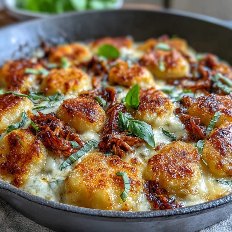 The genius of this recipe is that it respects your time while delivering restaurant-quality results—you're using a rotisserie chicken, a jarred sauce, and shelf-stable gnocchi, which means there's zero judgment happening here. The magic happens in the technique: toasting the gnocchi, layering the cheeses properly, and finishing under the broiler to get that crispy-meets-bubbly contrast. It's the kind of dinner that tastes like you planned it all week when really you just grabbed what was available and trusted the process.