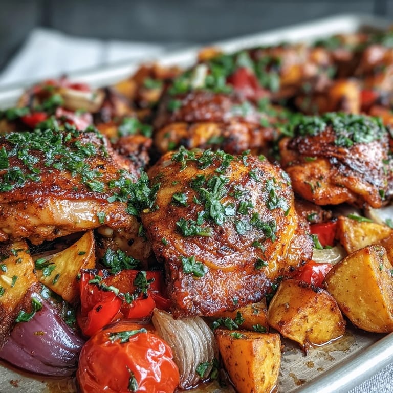 Pin It The smell hit me first: smoky, bright, and faintly sweet, all mingling in one tray. I'd been in a cooking rut, relying too much on separate pots and pans, when a friend mentioned she threw everything onto one sheet and called it dinner. I was skeptical until I pulled this traybake out of the oven, the chicken skin crackling, the sweet potatoes caramelized at the edges, and the peppers soft and glossy. It felt like cheating, but in the best way. Now it's my weeknight rescue plan.