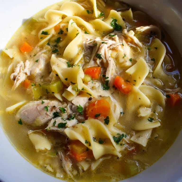 Pin It A comforting, classic soup featuring tender chicken, hearty vegetables, and egg noodles in a flavorful homemade broth—perfect for chilly days or when you need a nourishing boost.