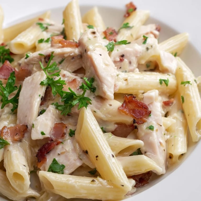 Pin It The skillet was still hissing when I realized I'd made too much again. My neighbor had knocked asking to borrow salt, caught the smell of bacon through the door, and ended up staying for dinner with her kids. That's the thing about this pasta: the aroma alone is an invitation. I'd started making it on nights when I needed comfort without fuss, when the fridge had chicken and bacon but my energy was low. It never fails to feel indulgent even when I'm cooking in sweatpants.