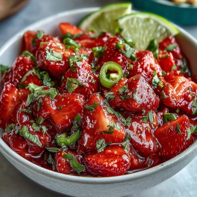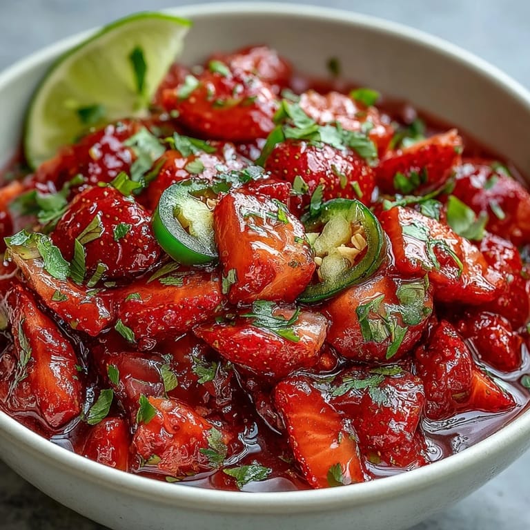 Pin It My neighbor knocked on my kitchen door one summer afternoon with a bag of strawberries she couldn't finish, and I found myself staring at them wondering what to do beyond jam. That's when it hit me—why not treat them like tomatoes? The result was this bright, unexpected salsa that somehow tastes like both a dessert and a savory dream at the same time. Now it's the first thing people ask me to bring to cookouts, and I never show up empty-handed.