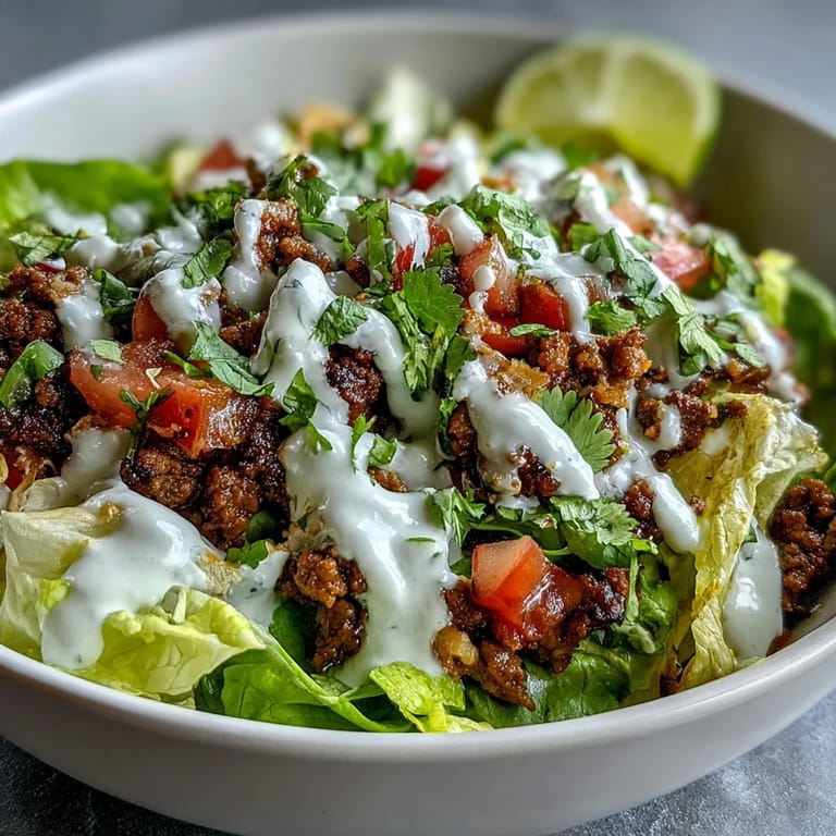 - Divide the chopped romaine between four bowls, then pile on the warm seasoned beef, diced tomatoes, thinly sliced radishes, and fresh cilantro. Drizzle generously with that lime crema and add avocado or cheese if you are feeling indulgent.