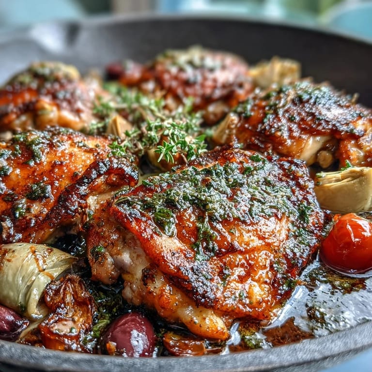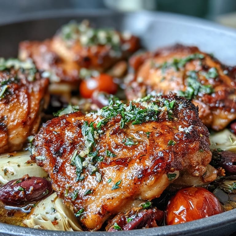 Pin It My neighbor knocked on my kitchen door one evening with a bottle of wine and a question: what was that incredible smell coming from my place? I'd thrown together chicken thighs, whatever vegetables looked promising in my crisper drawer, and some olives I'd been meaning to use before they got forgotten in the back of the fridge. Twenty minutes in the oven and suddenly my whole apartment smelled like a Mediterranean coastal town. She ended up staying for dinner, and that one-pan moment became my go-to recipe whenever I want something that feels fancy but tastes effortless.