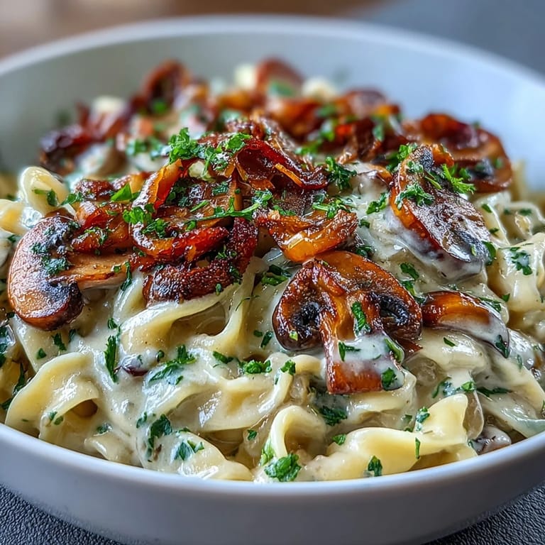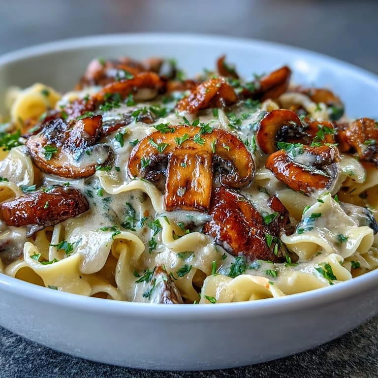 Pin It There's something about the smell of caramelizing onions that makes a kitchen feel like home, even when you're cooking something entirely new. Years ago, I was leafing through a worn cookbook at a friend's apartment when I spotted stroganoff and thought, why not make it vegetarian? That first attempt was clumsy, the sour cream broke, and I nearly gave up—but when I finally got it right, the creamy sauce clinging to those tender egg noodles felt like discovering comfort food all over again.