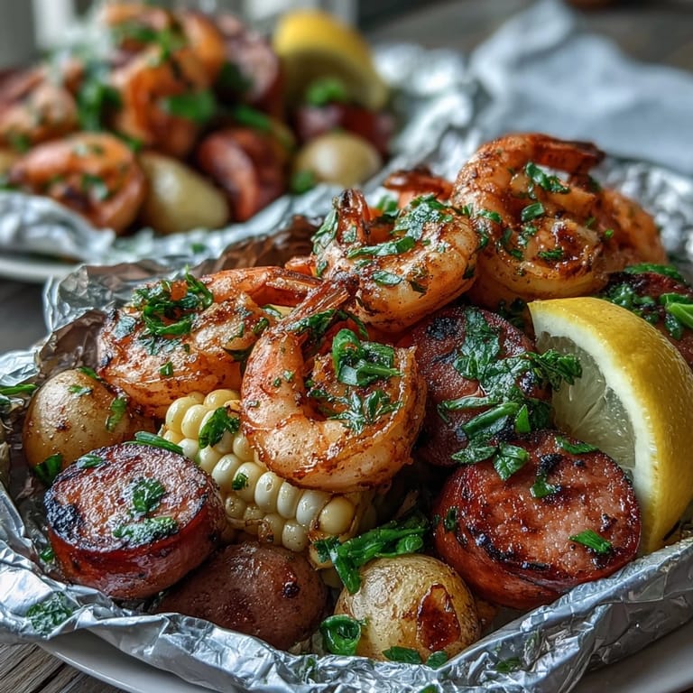 I made these for a small dinner party last summer when my friend Elena mentioned she was craving something with serious flavor but nothing fussy. The moment her family opened their packets at the table, the aroma hit everyone at once—that perfect combination of smoky sausage, sweet corn, and briny shrimp that makes you close your eyes for a second. Her seven-year-old, who notoriously picks at everything, ate the entire packet without complaint and asked for seconds. That's when I knew this recipe had staying power beyond just being convenient.