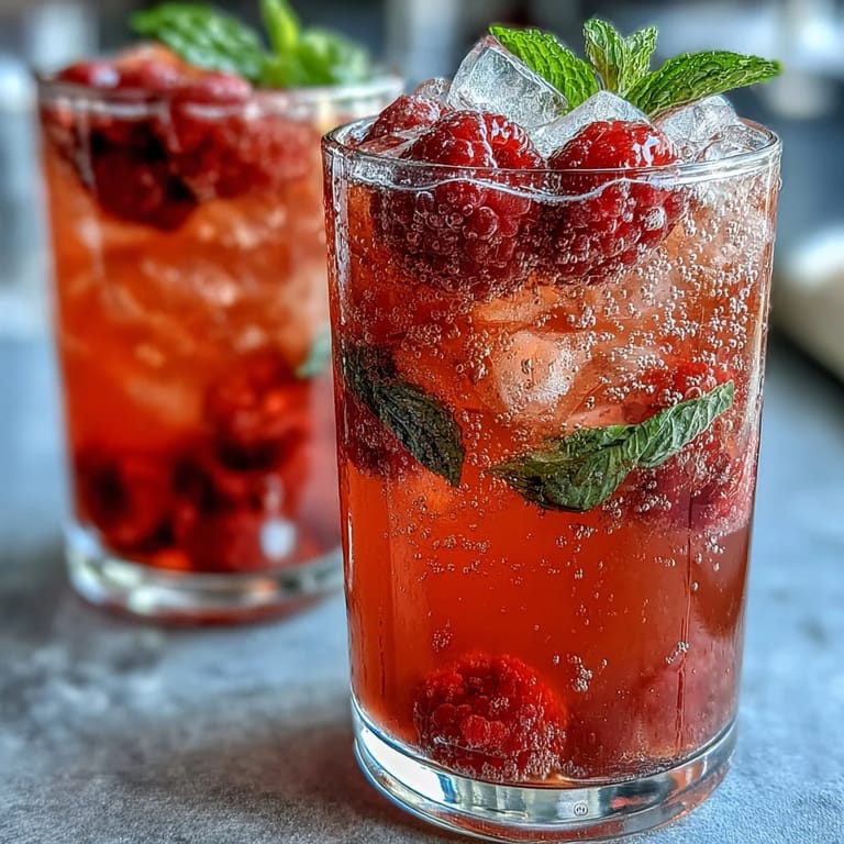 - Garnish each glass with extra raspberries, a lemon slice, and a sprig of mint. Serve immediately.
