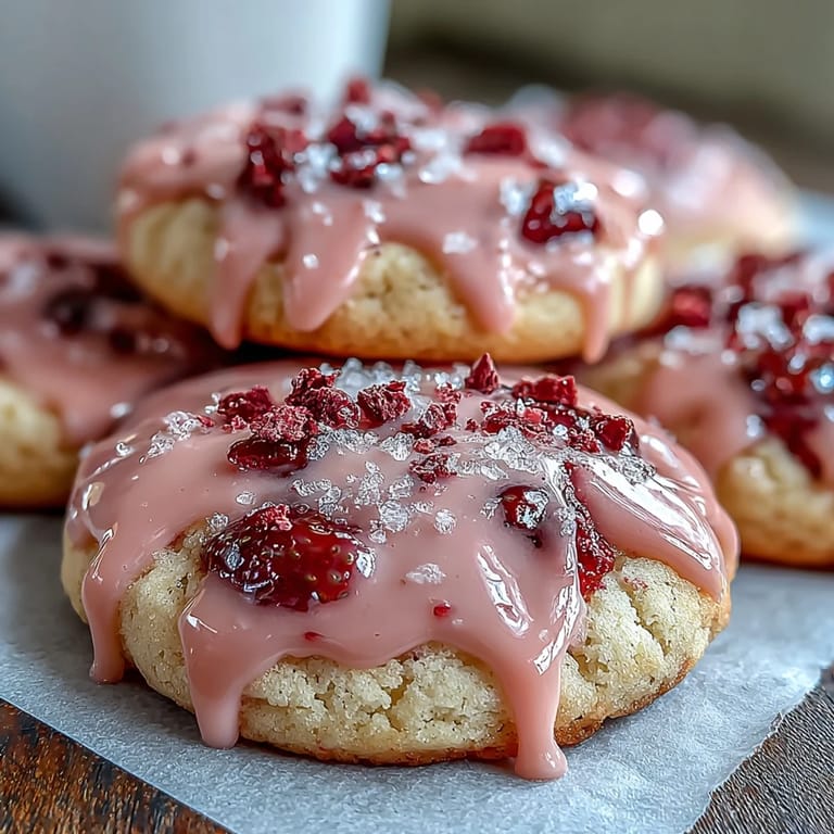 Pin It These Soft Strawberry Sugar Cookies with Pink Icing are more than just a dessert—they're a celebration of flavor, color, and the simple joy of homemade baking. Each cookie is a tender, buttery vessel for the natural sweetness of strawberries, elevated by a glossy pink glaze that makes them as beautiful as they are delicious. With their melt-in-your-mouth texture and vibrant berry flavor, these cookies are destined to become a favorite in your baking repertoire. Whether you're an experienced baker or just starting out, this recipe rewards you with impressive results and smiles all around. So gather your ingredients, preheat that oven, and get ready to create something truly special.