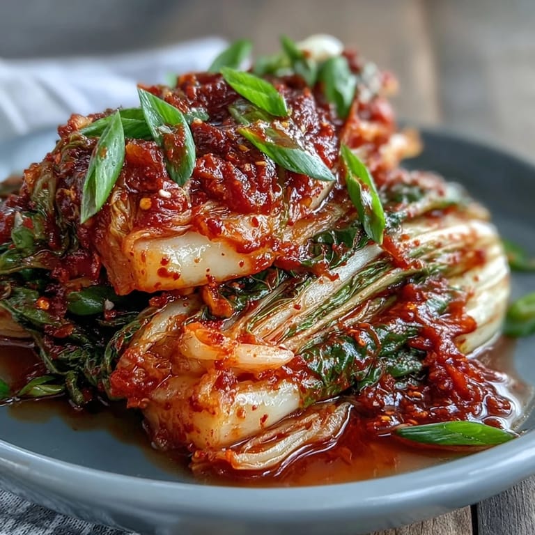 Pin It My first batch of kimchi sat fermenting on my kitchen counter for three days while I obsessively checked it like a nervous parent, convinced I'd somehow messed up this ancient Korean staple. The smell that emerged—garlicky, funky, alive—was nothing like the mild jar from the grocery store, and that's when I understood why people made this at home. Now, whenever I see that familiar red paste coating fresh cabbage, I'm transported back to that moment of uncertainty turning into pure joy with that first tangy bite.