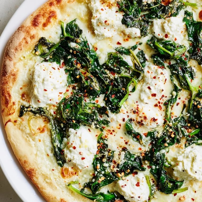 Pin It My neighbor showed up one evening with a bag of fresh spinach from her garden, and I had just picked up ricotta that morning with no real plan for it. I was craving pizza but wanted something lighter than the usual red sauce and pepperoni. The idea hit me while I was staring into the fridge: why not let the ricotta be the star? That night, I brushed garlic butter on dough, dotted it with creamy cheese, and scattered wilted greens across the top, and it turned into one of those accidental favorites that I now make on repeat.