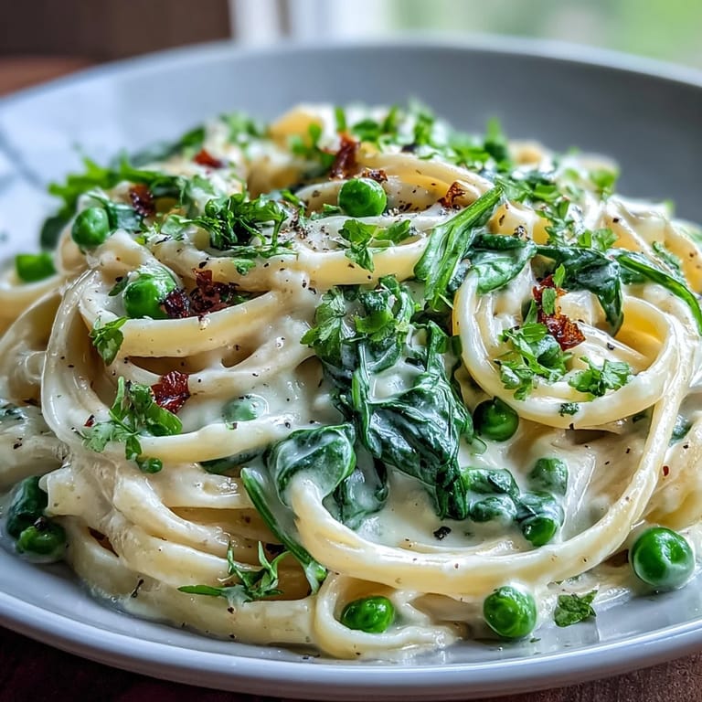 To achieve the perfect sauce consistency, add the reserved pasta water gradually while tossing the pasta. Be careful not to overcook the peas to maintain their vibrant color and natural sweetness. Using freshly grated Parmesan enhances the sauce's creaminess and flavor. For best results, serve immediately to enjoy the sauce at its silky best.