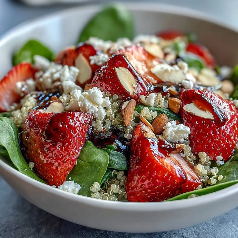 Pin It My friend texted me a photo of her farmers market haul last summer, and I spotted the most perfect strawberries nestled between bunches of spinach. She asked what to do with them, and I found myself suggesting a salad I'd been quietly perfecting for months. The combination of sweet berries, nutty quinoa, and that peppery spinach just clicked—it became the dish I made whenever I wanted something that felt special but required minimal fuss.